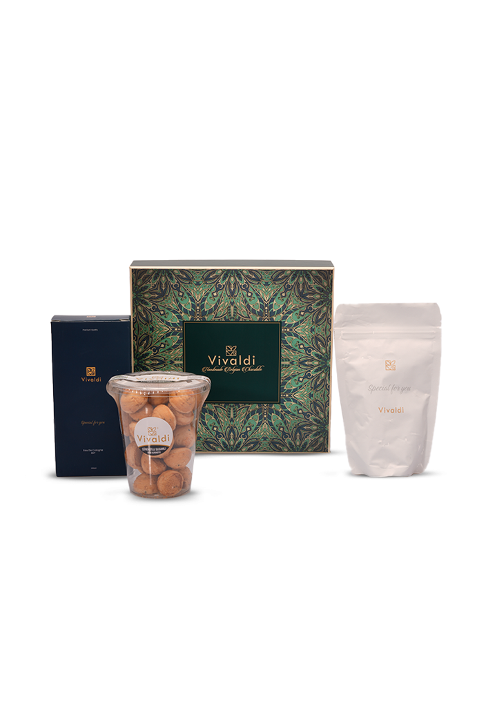 Zamanı yavaşlatmaya ve anın tadını çıkarmaya davetlisiniz. İlhamını Vivaldi'nin "yavaş, sakin ve derinden" ilerleyen Adagio temposundan alan bu özel set, koşturmacaya verilmiş en prestijli moladır. Hikayemiz, zümrüt yeşili Barok desenli kutunun içindeki, ustalıkla hazırlanmış gerçek Belçika Çikolatası ile başlıyor. Damakta yavaşça eriyen bu kusursuz lezzete, "Special for you" paketindeki taze çekilmiş Türk kahvesinin köklü hatırı ve Vivaldi kolonyasının ferahlatıcı esintisi eşlik ediyor. Sevdiklerinize aceleye getirilmeyecek, yudum yudum ve lokma lokma yaşanacak bir huzur armağan edin.