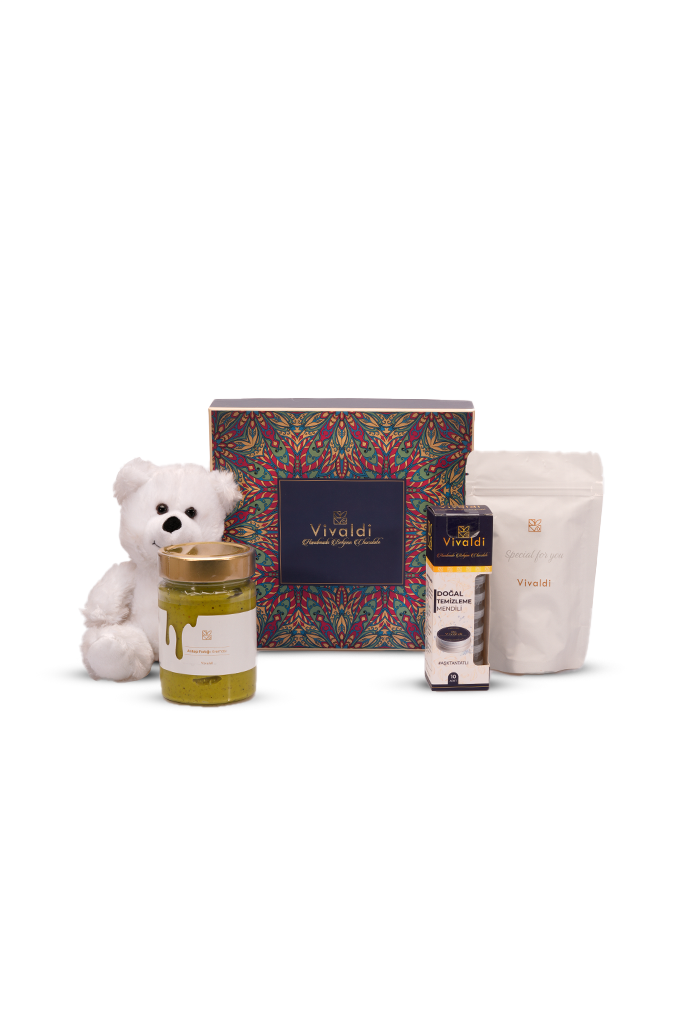 Müzikte "Piano", fısıltıyla söylenen tatlı bir söz, naif bir dokunuş ve notaların en yumuşak halidir. Vivaldi Piano Hediye Seti, sevdiklerinize tam da böyle huzurlu, içten ve yumuşacık bir jest yapmak için tasarlandı. Bu naif şölenin kalbinde, mavi-mor tonlarındaki büyüleyici Barok kutusuyla bir lezzet efsanesi olan Gerçek Belçika Çikolatası yatıyor. Usta ellerde şekillenen ve damakta ipeksi bir hisle eriyen bu premium çikolataya; "Special for you" paketindeki taze Türk kahvesinin geleneksel huzuru, yoğun Antep Fıstığı Kremasının tatlı coşkusu ve kutuyu açtığı an yüzünde tebessüm yaratacak o sevimli beyaz peluş ayıcık eşlik ediyor. Vivaldi Piano ile sevdiklerinize kelimelere ihtiyaç duymadan, en tatlı ve en yumuşak sevgi melodisini armağan edin.
